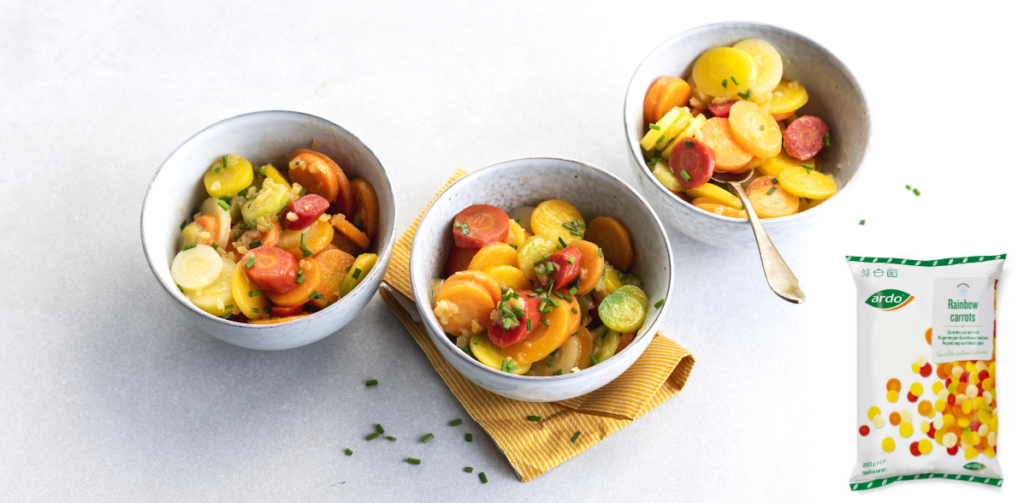 Stel je een extra kleur voor in de regenboog wortelschijfjesmix. De aantrekkelijke kleurencombinatie van wit tot rood komt namelijk volledig natuurlijk tot stand. Deze unieke mix is het resultaat van een goede samenwerking tussen ARDO‘s agro en innovations team. Het resultaat is een uitbundig kleurenpalet dat een extra dimensie geeft aan elk gerecht!